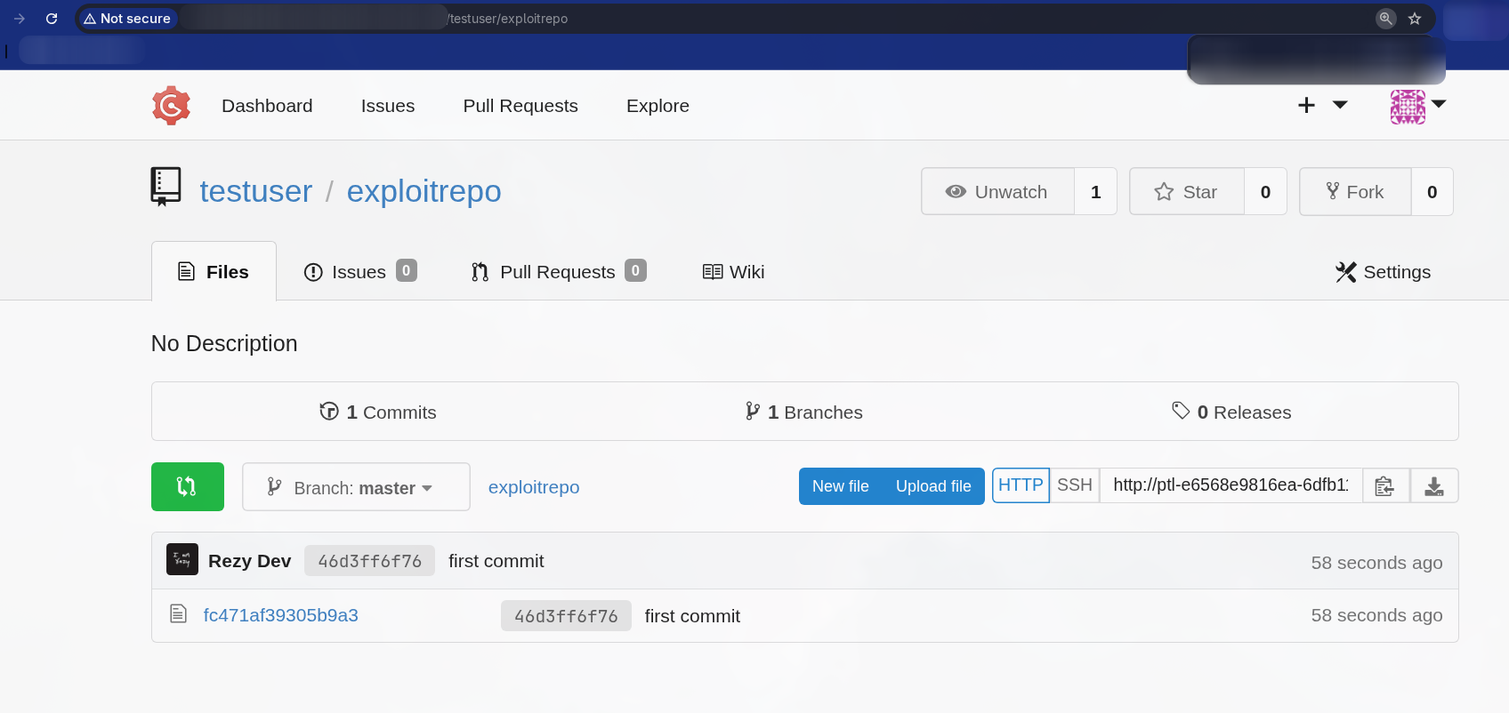 Now we can register an account to our target application and create an repo. Then we can push the session file we extracted using the user we created.
