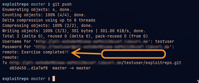 Our command gets executed and is shown in git push result.