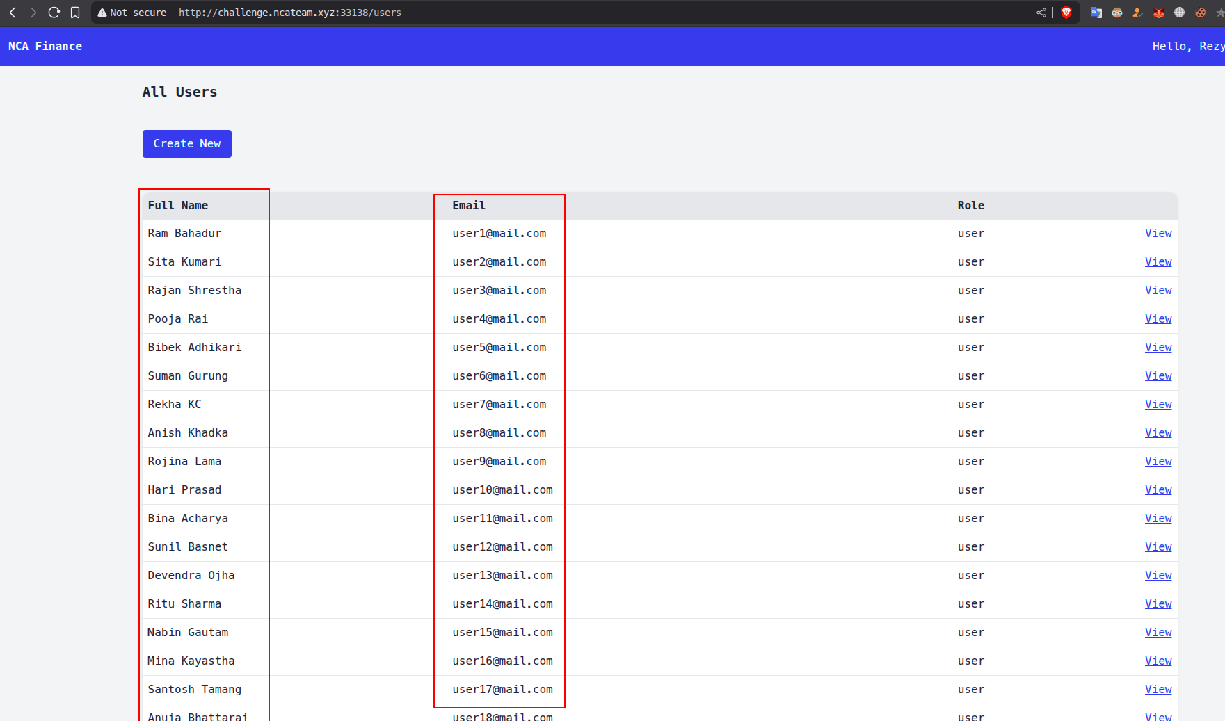 Please note that I did not include Edit User, Delete User functionality in this fictional CTF.
